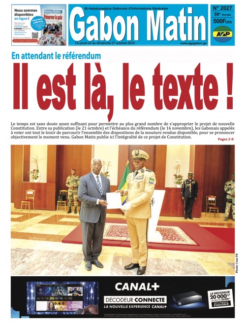Oligui Nguema, le plébiscite -- Le ministre de l'Intérieur Hermann Immongault, Président de la CNOCER, a annoncé hier dimanche les résultats provisoires de la présidentielle qui s'est tenue le 12 avril. Une première dans l'histoire politique du Gabon. Oligui Nguema, le plébiscite -- Le...